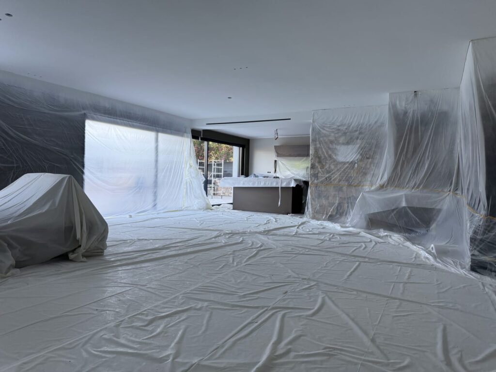 Avant même de toucher un mur, Sud Artiste Rénovation protège votre espace comme si c’était un musée. Sol, mobilier, passages, portes, escaliers… rien n’est laissé sans bâche, sans film ou sans carton.